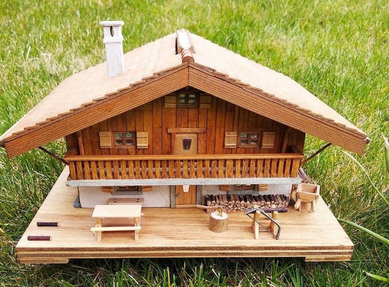 La fabrication d'un chalet miniature pouvait lui prendre jusqu'à une bonne centaine d'heures et, pour les créations les plus ambitieuses, jusqu'à 300 heures. José Ansermoz était un passionné et n'était jamais avare de son temps. S'il avait décidé de reproduire un toit de tuiles au moyen d'allumettes plates ou de sections de bâtons de glaces découpées à l'exacte dimension et collées minutieusement -il pouvait y en avoir de 2 à 3'000 pour une seule création- il allait jusqu'au bout de son ouvrage sans jamais rechigner. Sifflotant ou chantonnant la Colline aux Oiseaux ou Pampero pour se donner du courage, il lui arrivait de confectionner un deuxième chalet simultanément si le premier était destiné à un ami ou à un membre de sa famille. Pour sa propre collection, disait-il...