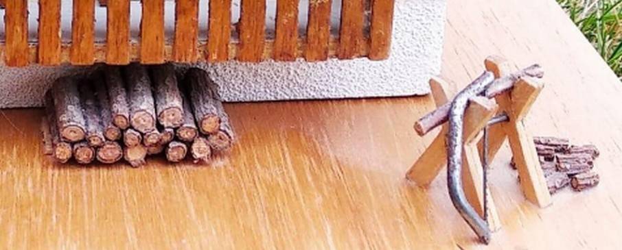 Deux ou trois poils de brosse à dent pour figurer le filet d'eau d'une fontaine, des branches et brindilles naturelles soigneusement choisies pour leur linéarité afin de pouvoir les réunir en un fagot réaliste, des sections de bâtonnets de bois pour représenter une barrière ou une rambarde, du marc de café pour simuler les plates-bandes et surfaces terreuses, des allumettes à profusion, bref, José Ansermoz mettait ses méninges à contribution jusqu'à l'inimaginable.